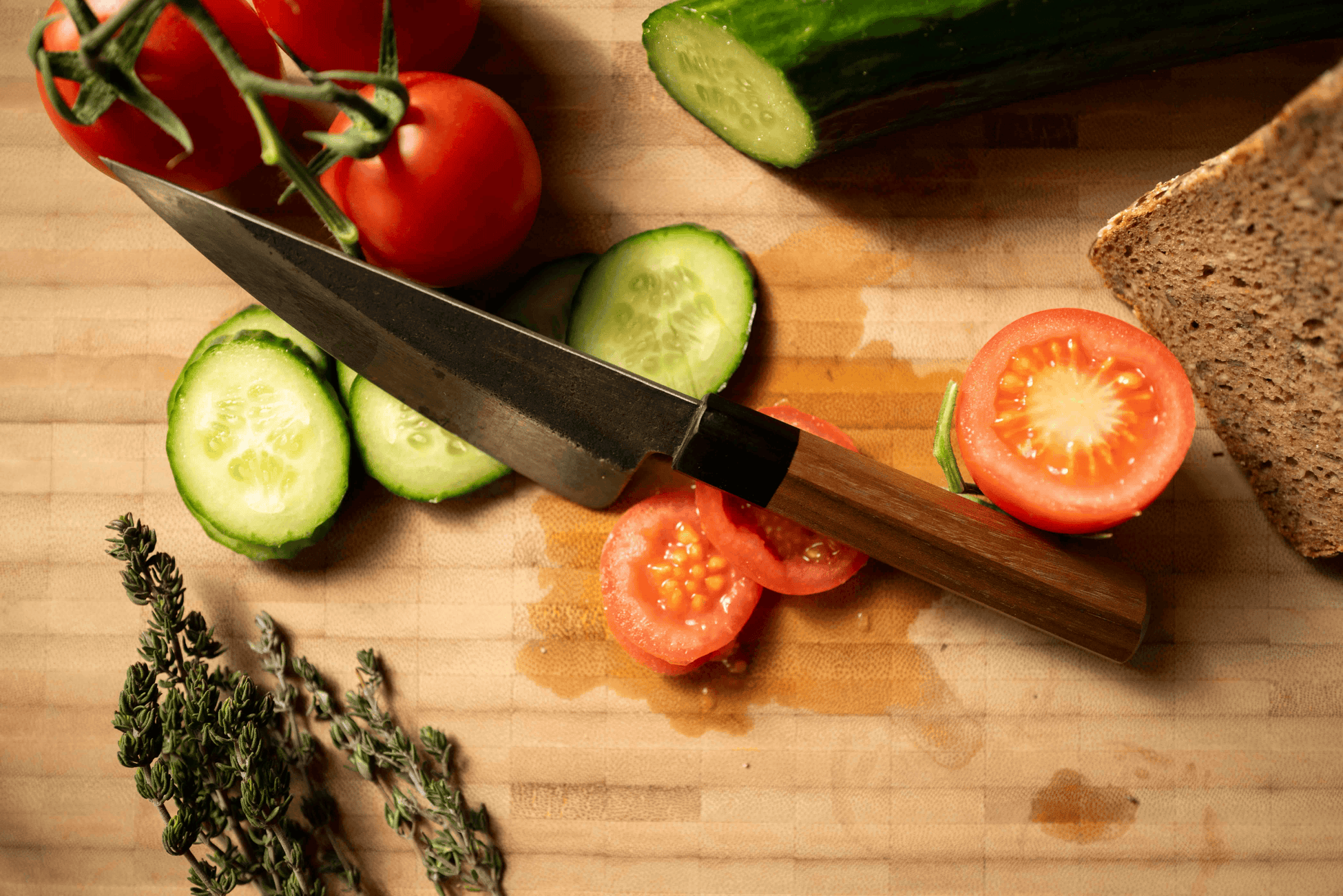 Herstellung und Befestigung des Griffs: Die Griffe werden aus hochwertigen und nachhaltig angebauten Hölzern, wie Ebenholz oder Teakholz sowie Bambus gefertigt und anschließend an den Messern befestigt.